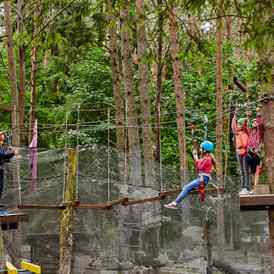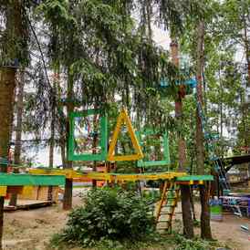 Переступив порог клуба вы попадаете в сосновый лес, где гармонично соседствует огромный веревочный городок и большая зона отдыха с беседками и мангалами.